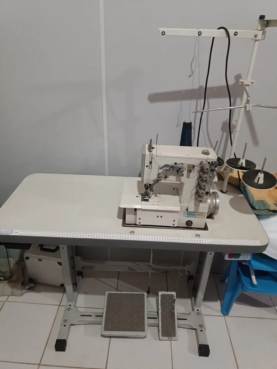 Máquina Galoneira para costura de alta qualidade. Ideal para costureiras e confecções. Perfeita para acabamentos impecáveis em diversos tecidos.