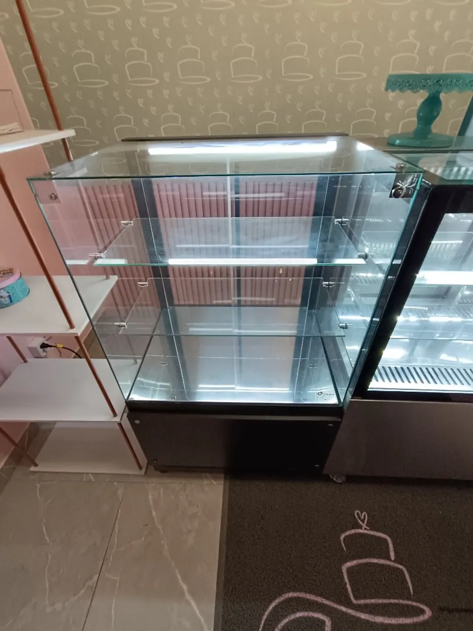 Vitrine expositora seca ideal para expor seus produtos de forma elegante e prática. Perfeita para destacar bolos, doces, salgados e muito mais! Com design moderno e iluminação interna, seus produtos ganham destaque e atraem ainda mais clientes