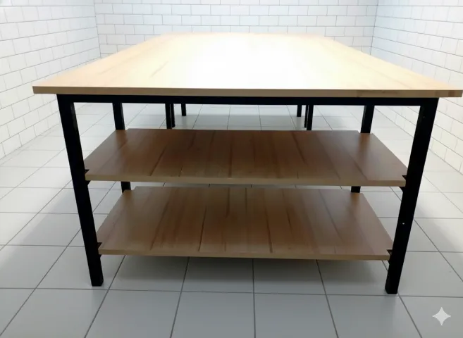 Mesa ampla e resistente com tampo grande em madeira 200 cm (C) x 162cm L) x 80 (A) 25mm de espessura + 2 prateleiras laterais (60cm x 21 cm) para organizar pratos e suprimentos. Estrutura metálica robusta suporta peso pesado de recipientes, alimentos e equipamentos sem vacilar. Tamanho generoso permite montagem de buffet completo e impressionante. Mantém tudo organizado e ao alcance durante o serviço. Estabilidade total e durabilidade para anos de eventos bem-sucedidos! Ideal para bufês, eventos e self-service
