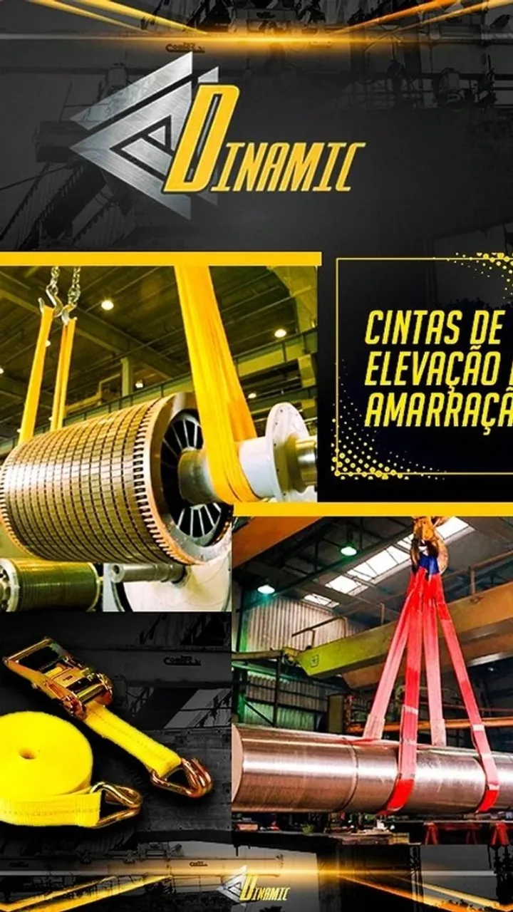 Somos a empresa Dinamic, fabricantes de cintas para elevação e amarração de cargas, além disso, todos os nossos produtos seguem as respectivas normas EN1492 e NBR15637-1. Todas as nossas cintas são certificadas, laudadas e assinadas por engenheiros.