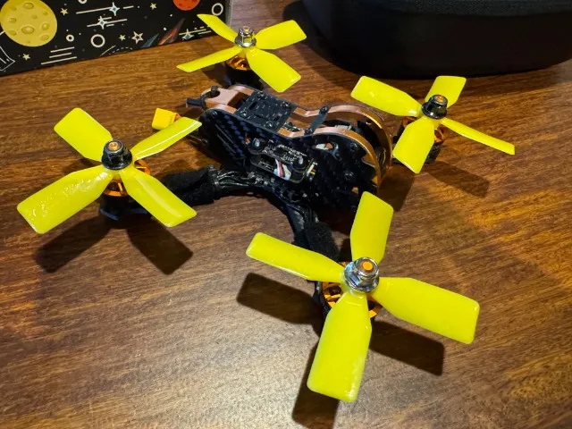 Drone foi montado porem só voou para teste uma vez, esta como novo