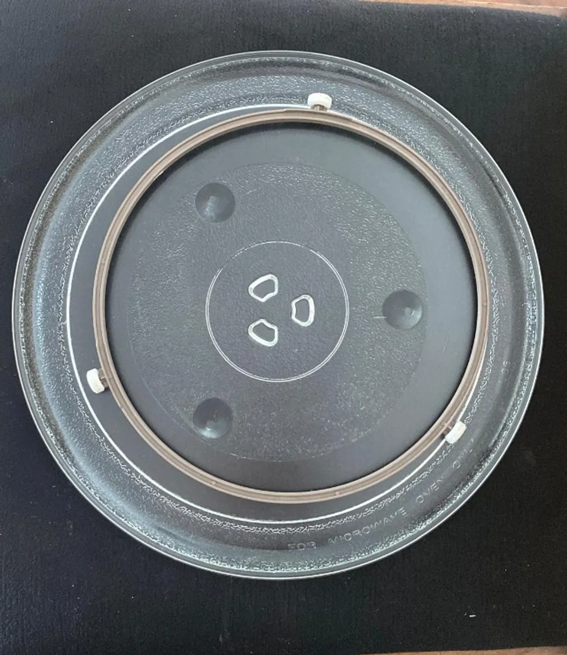 Suporte e Prato de vidro (31cm) para micro-ondas, ideal para reposição. Garante o aquecimento uniforme dos alimentos. Ótimo estado, sem danos.