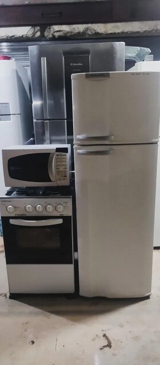 Kit completo de eletrodomésticos para sua cozinha! Geladeira com design moderno e freezer espaçoso. Ideal para quem busca praticidade e organização. Mais fotos e informações chamar no WhatsApp