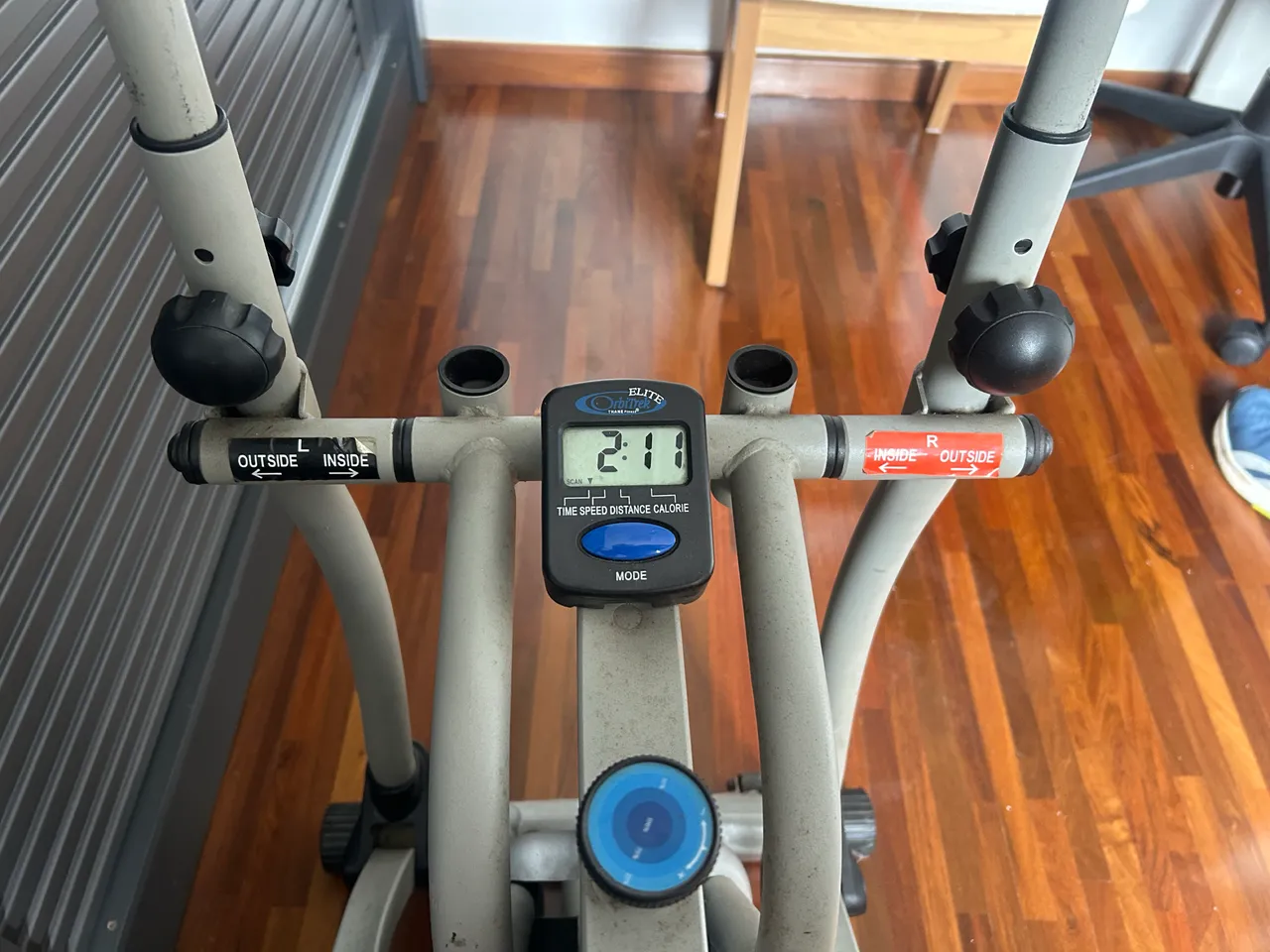 Aparelho Orbitrek para exercícios aeróbicos e tonificação muscular. Ideal para quem busca uma rotina de exercícios completa em casa, com monitoramento de tempo, velocidade, distância e calorias.