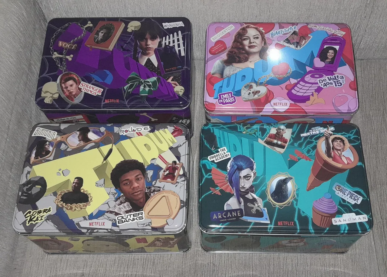 Latas Tudum Netflix VAZIAS, Adesivos, Pins, Cenários, Chaveiros, Pôsteres e Cards. Perfeitas pra colecionadores e fãs, com design de alta qualidade e diversos personagens e séries populares. Valores negociáveis. Aceito TROCAS.