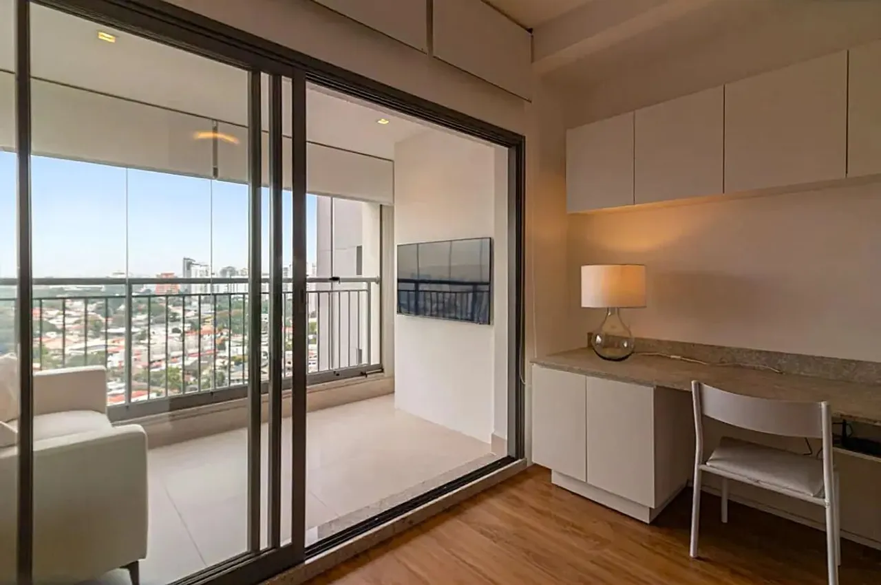 Studio com ótima localização em Moema, fora da rota de aviões, a poucos minutos do Aeroporto de Congonhas e próximo ao Parque do Ibirapuera, em condomínio novo e sofisticado. Oportunidade para investimento em Airbnb pela alta demanda da região. O imóvel conta com vista privilegiada para a cidade, interiores modernos e vem equipado com frigobar, cooktop, forno elétrico, filtro de água, sofá e televisão. Sem vaga, mas o prédio conta com garagem, permitindo estacionamento de veículos mediante contratação de serviço diário ou mensal.