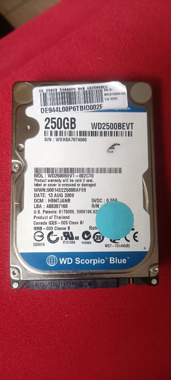HD Western Digital Scorpio Blue de 250GB, ideal para quem busca armazenamento confiável e eficiente. Desfrute de alta capacidade para seus arquivos e desfrute da qualidade WD!