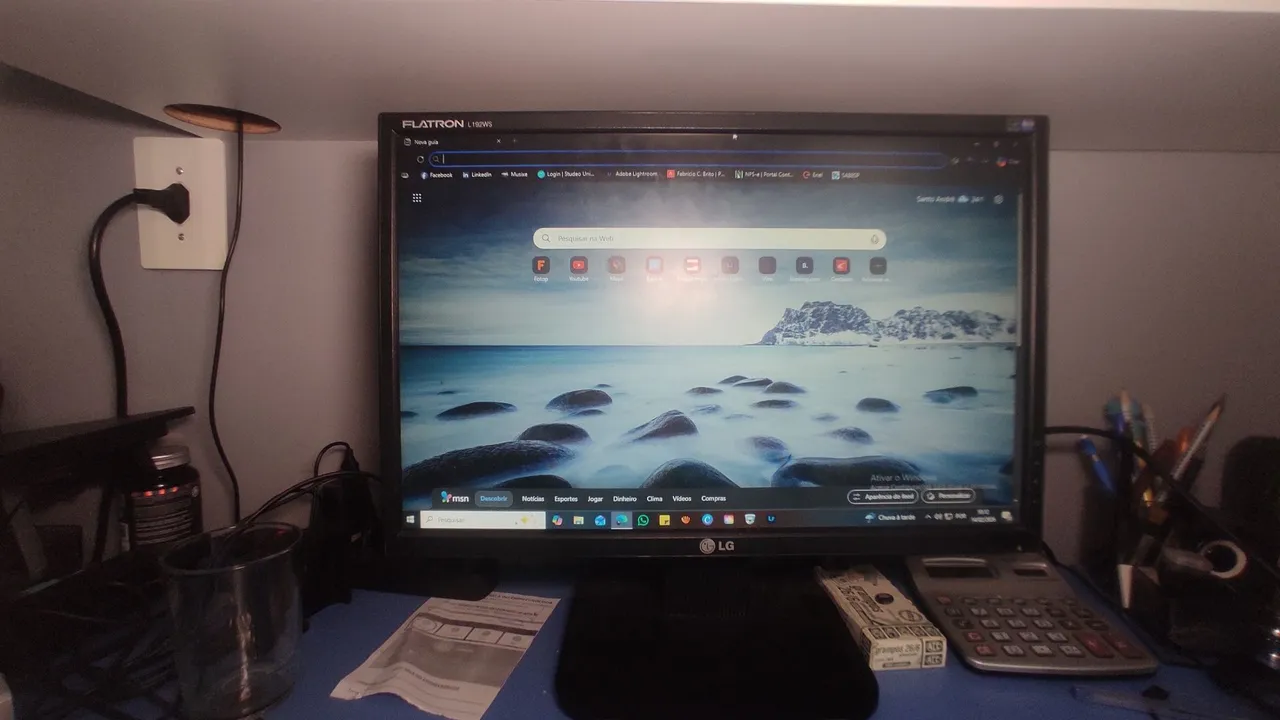 Monitor LG 19' polegadas Funciona Obs. As vezes a imagem fica estranha, não sei o q é, nem sei se pode ser o cabo ou não. Mas funciona bem