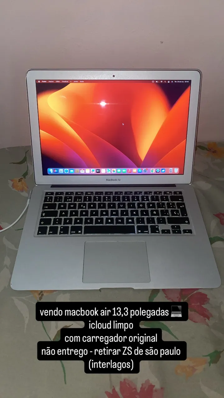 MacBook Air 13.3 polegadas, design elegante e desempenho excepcional. Perfeito para suas tarefas diárias com tela vibrante. Acompanha carregador original.