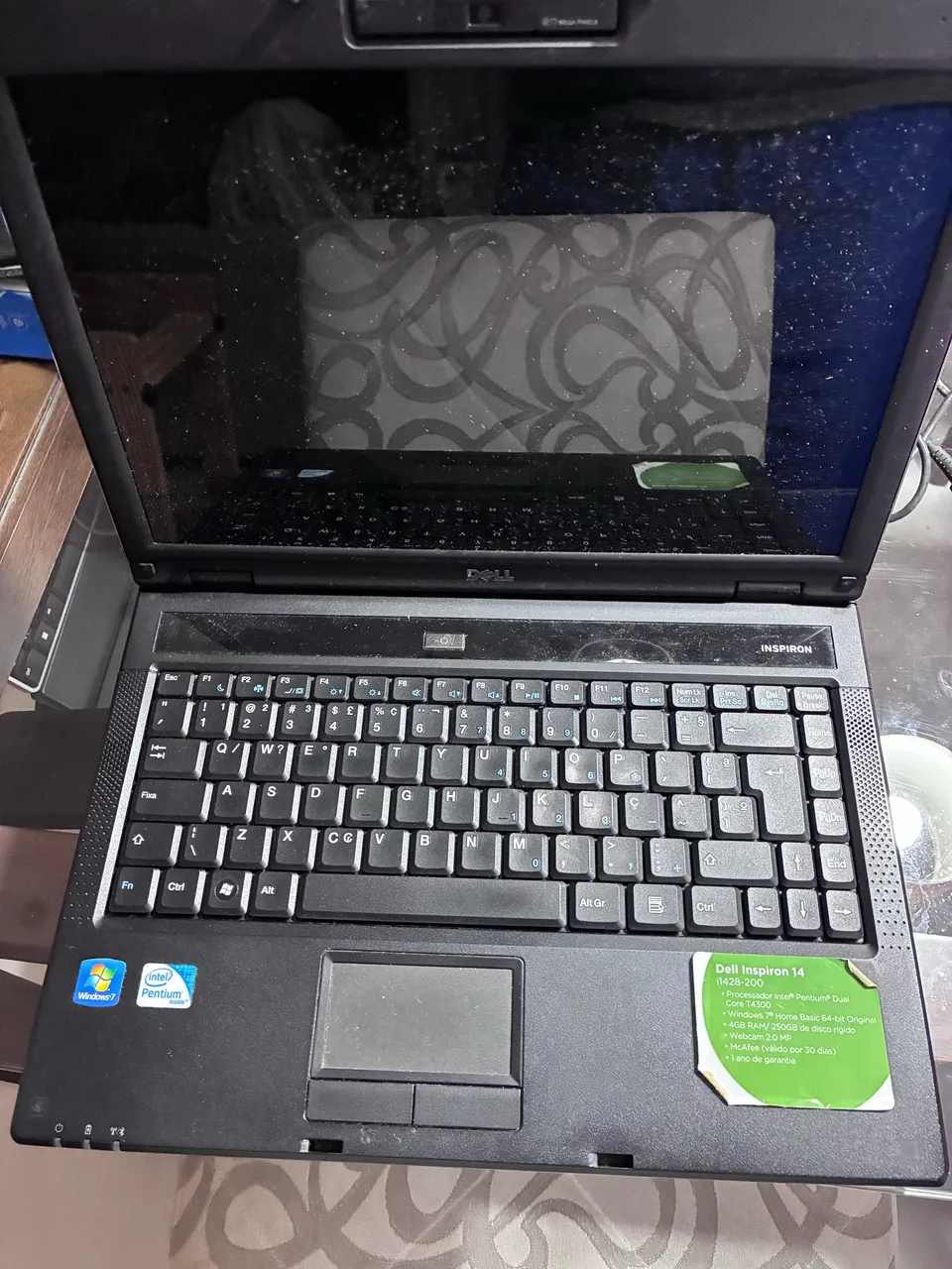 Notebook Dell Inspiron 14, com processador Intel Pentium Dual Core T4300, 4GB de RAM e 250GB de disco rígido. Ideal para quem busca um notebook para tarefas básicas, com webcam 2.0 MP.
