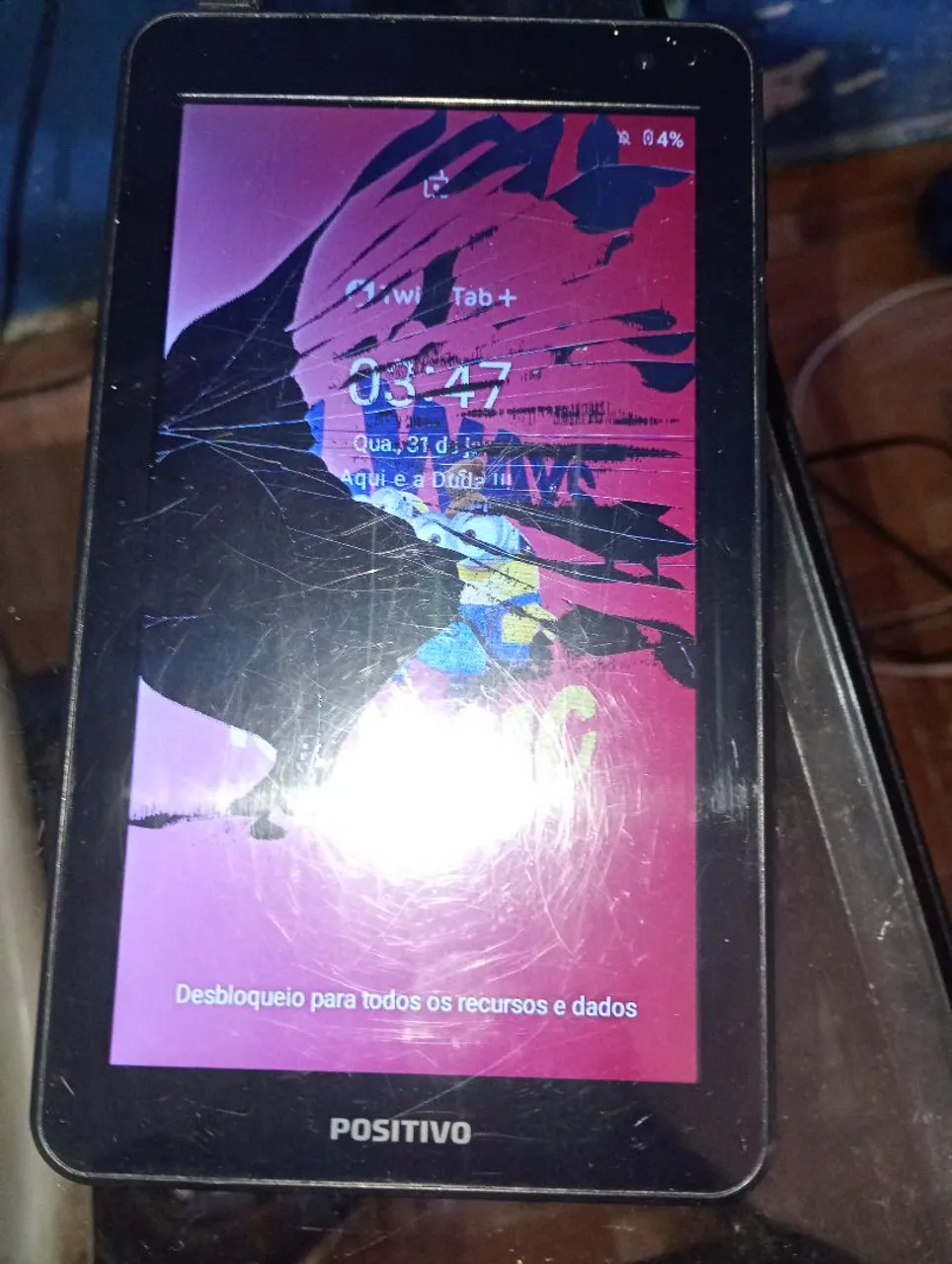 Tablet Positivo dos Minions, perfeito para crianças! Leve a diversão dos Minions para o mundo digital com este tablet prático e divertido. Ideal para jogos, vídeos e aprendizado! O defeito é a tela manchada mas não está trincado
