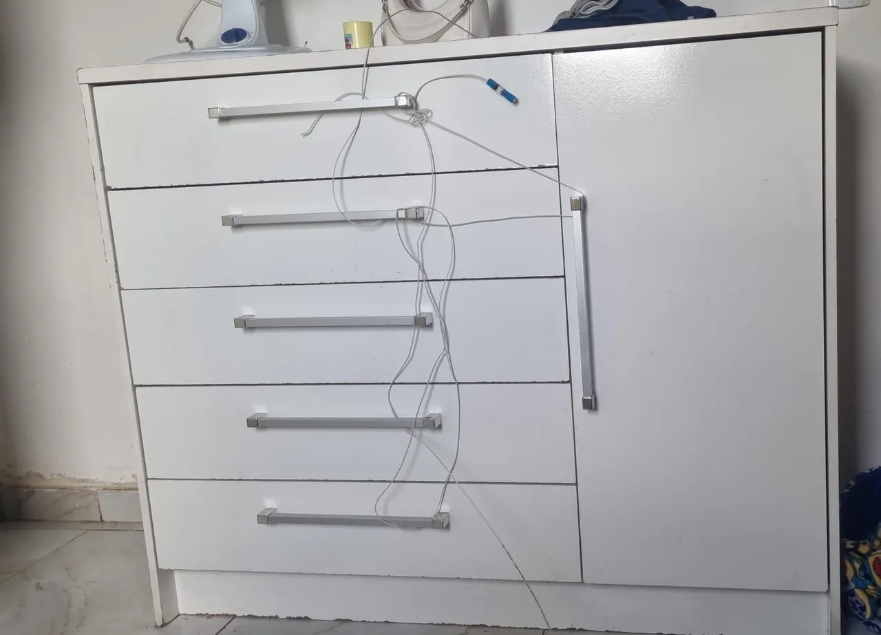 Linda cômoda branca, perfeita para organizar seus pertences com elegância e praticidade. Design moderno e funcional para qualquer ambiente.