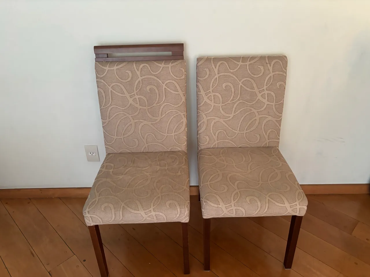 Lindas cadeiras de madeira com design elegante e assento estofado, perfeitas para sua sala de jantar ou escritório. Conforto e estilo em um só produto! Acompanha 6 capas cinza