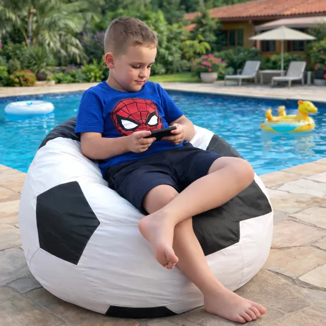 Puff em formato de bola de futebol, perfeito para relaxar e decorar o ambiente com estilo e diversão. Ideal para crianças e adultos que buscam conforto e design diferenciado.