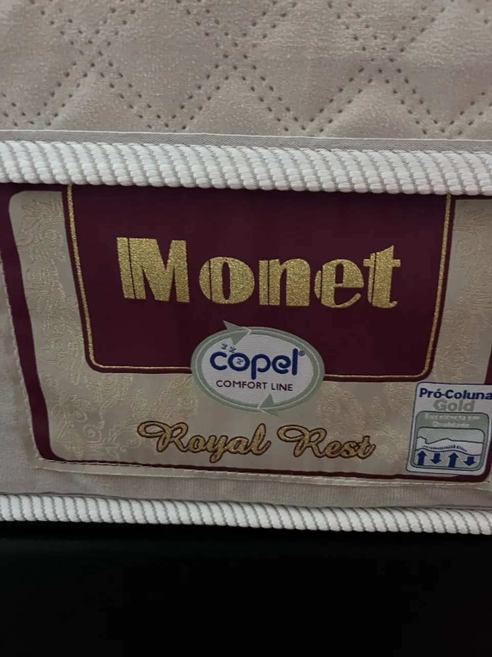 Colchão Copel Monet Royal Rest, com tecnologia Pro-Coluna Gold para o máximo conforto e suporte para sua coluna.