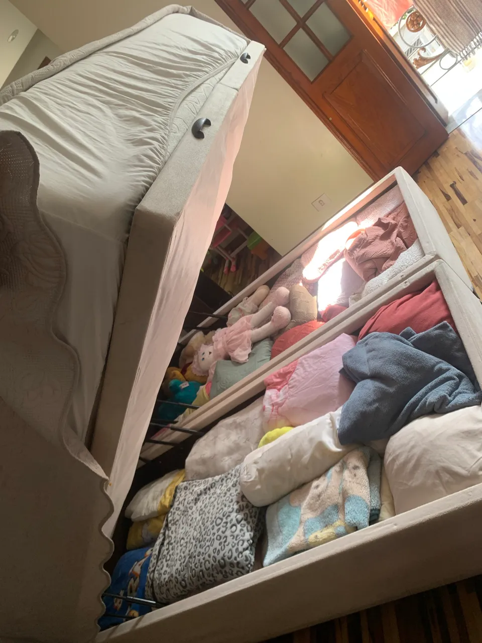Em bom estado a base só o colchão que deu uma sedida como mostrado na foto mais nada que atrapalhe o seu sono .