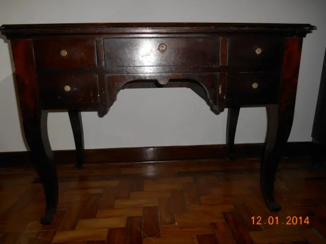 escrivaninha antiga de madeira maciça estilo provençal (mais de 80 anos da década de 40) em excelente estado de conservação (madeira e gavetas em perfeito estado).