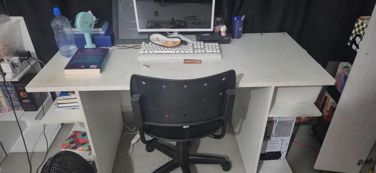 Linda mesa para estudos, trabalho ou o que você precisar. Com design moderno, ela se adapta a qualquer ambiente, oferecendo praticidade e organização para suas atividades.
