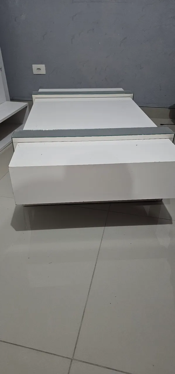 Linda mesa de centro branca com detalhes em espelho, perfeita para sua sala! Design moderno e elegante que combina com diversos estilos de decoração.