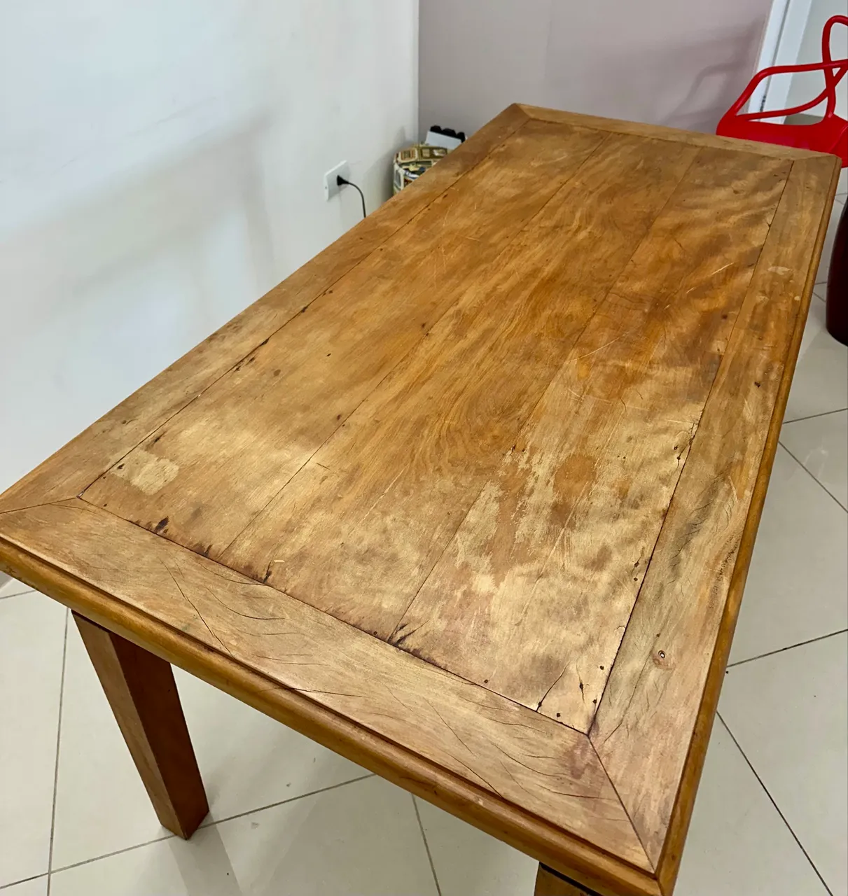 Descrição do produto: Mesa retangular usada, produzida em madeira de demolição. Dimensões da mesa: 1,60 de comprimento X 80 cm de profundidade X 80 cm de altura. Espessura do tampo: 4 cm. Esse móvel em específico trata-se de uma peça extremamente resistente por ser produzida em madeira maciça de ótima qualidade e estilo rústico.