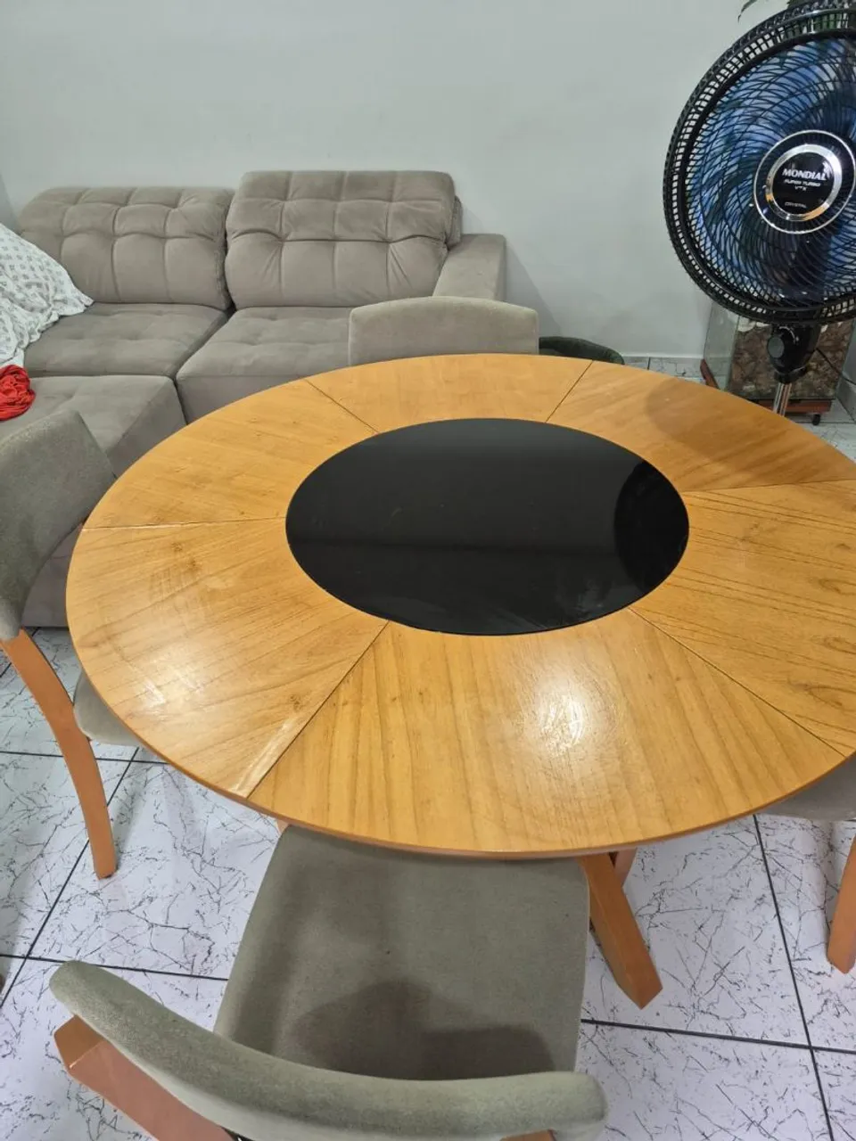 Linda mesa redonda de madeira, perfeita para sua sala de jantar ou cozinha. Design elegante e sofisticado que combina com qualquer ambiente. Um toque de charme para suas refeições!