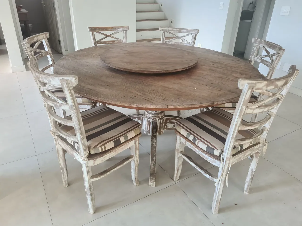 Linda mesa redonda rústica com 6 cadeiras De 1,60