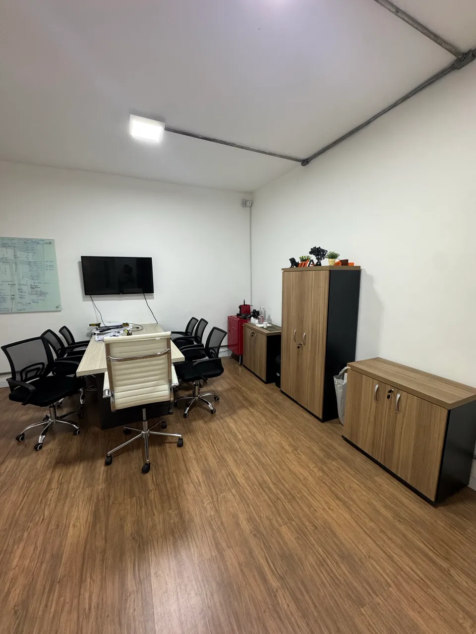 6 mesas + 1 mesa de reunião + 12 cadeiras + 3 armarios