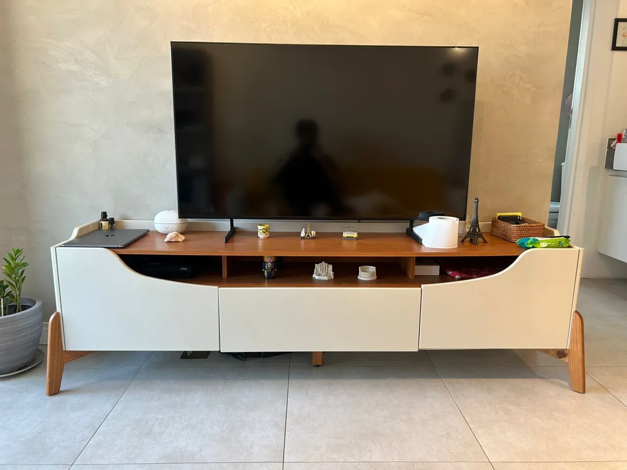 Lindo rack para sua sala, com design moderno e elegante. Perfeito para organizar sua TV e seus aparelhos eletrônicos, além de decorar o ambiente.