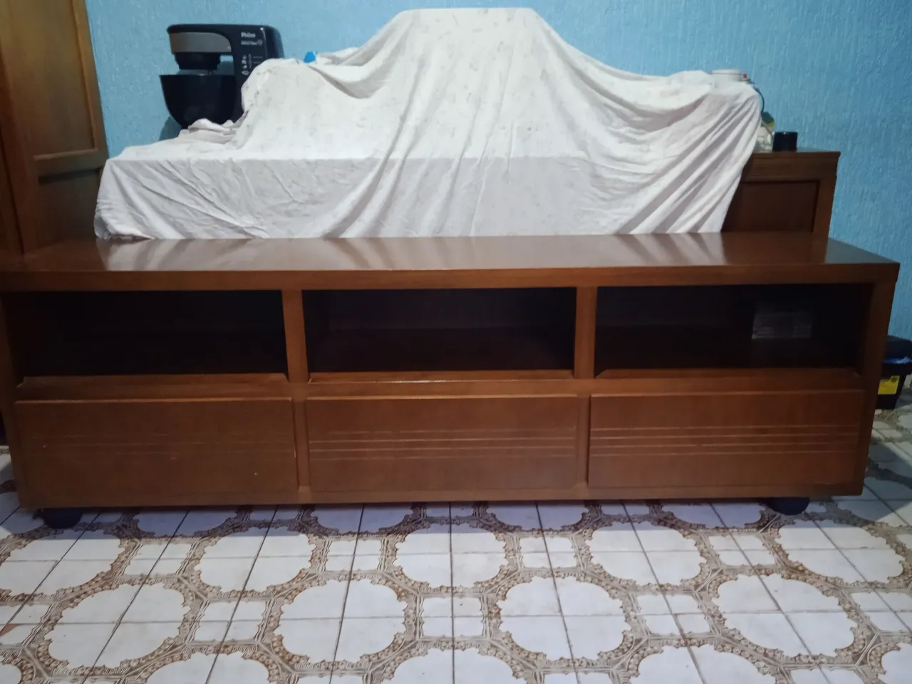 Lindo rack de madeira, ideal para sua sala! Design elegante e funcional, perfeito para organizar sua TV e seus aparelhos eletrônicos. Aproveite!