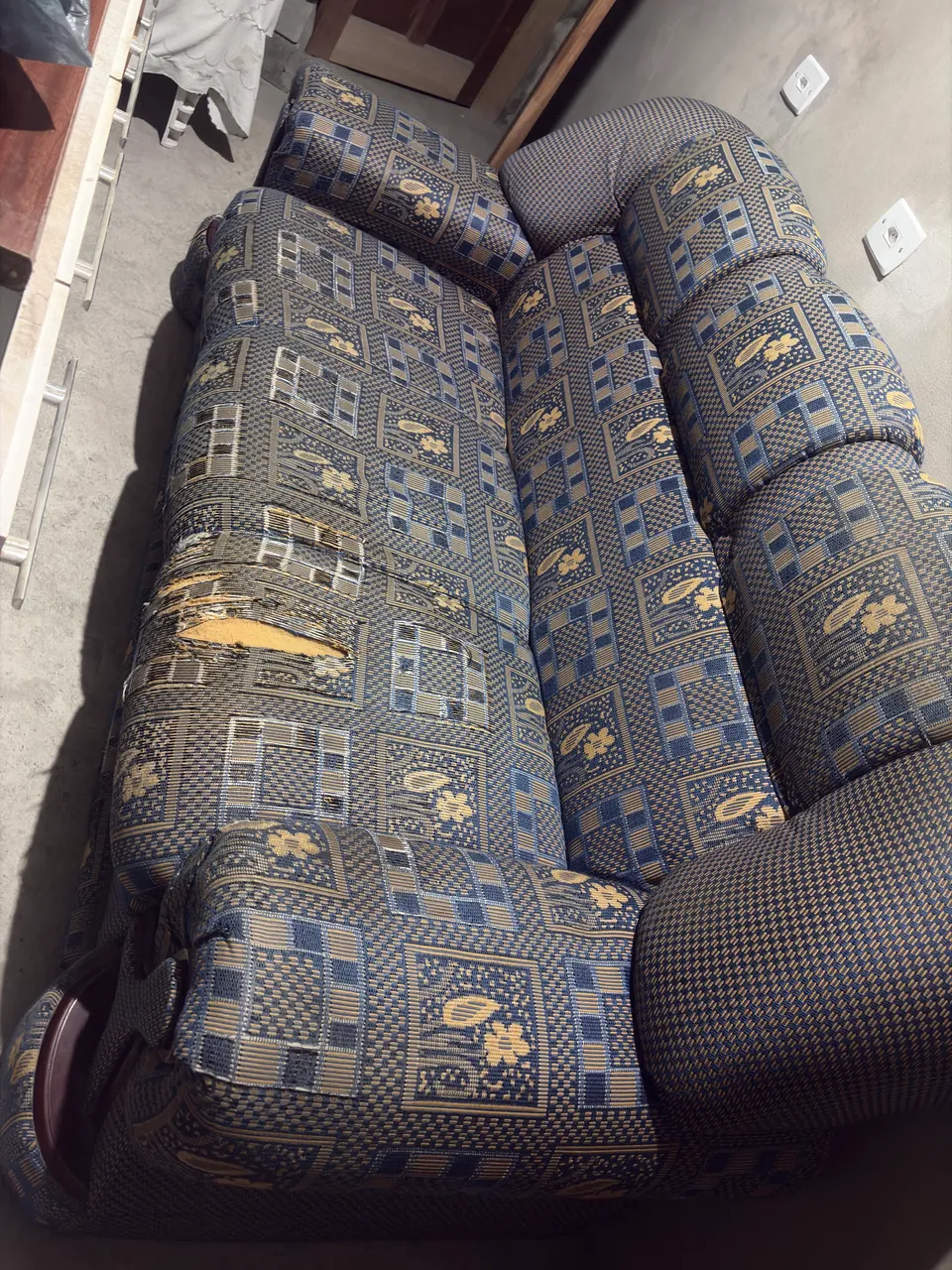 Sofá de 2 lugares e três lugares, o grande precisa de uma pequena reforma, mas se usar com capa tranquilo, não realizamos entrega! Estou vendendo para meus pais.Moramos na mesma cidade, mas precisa retirar na casa deles. Obs: não aceitamos troca e não baixamos o valor.
