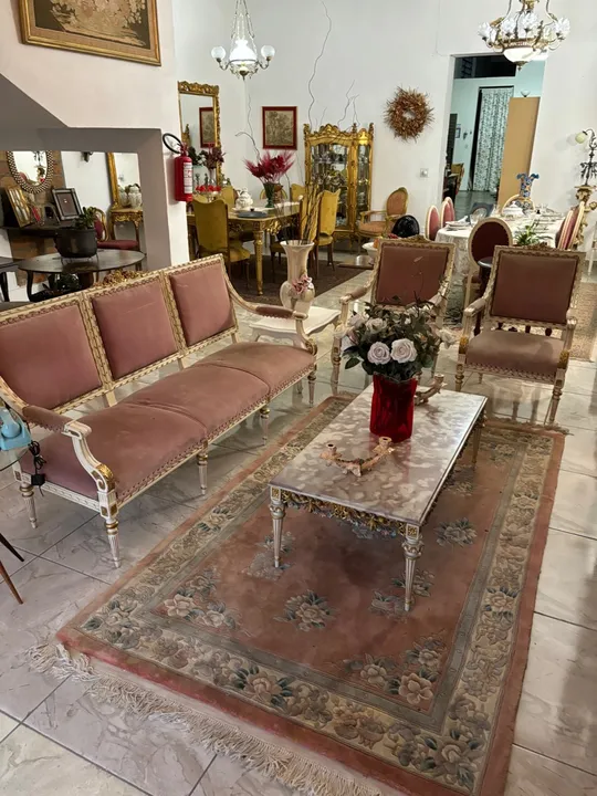 Lindo jogo de sofá e 2 poltronas Luiz XVI, tecido em veludo , não está rasgado, está sujo , necessita limpeza ou trocar ,