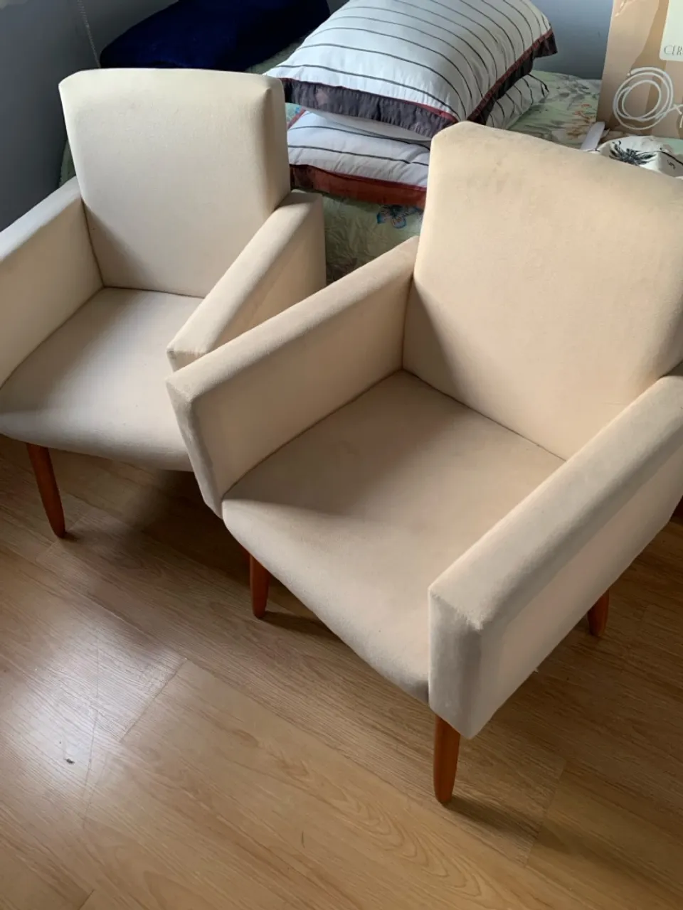 Conjunto de poltronas elegantes, perfeitas para dar um toque de sofisticação ao seu ambiente. Design moderno e confortável, ideal para relaxar e receber visitas.