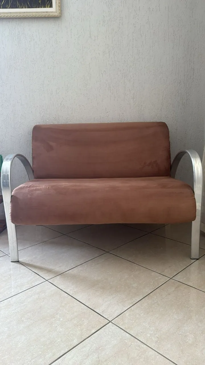 Poltrona 2 lugares em excelente estado de conservação, sem quaisquer marcas /manchas. Cor marrom claro e apoiador cromado. Excelente para idosos ou pessoas acima do peso.