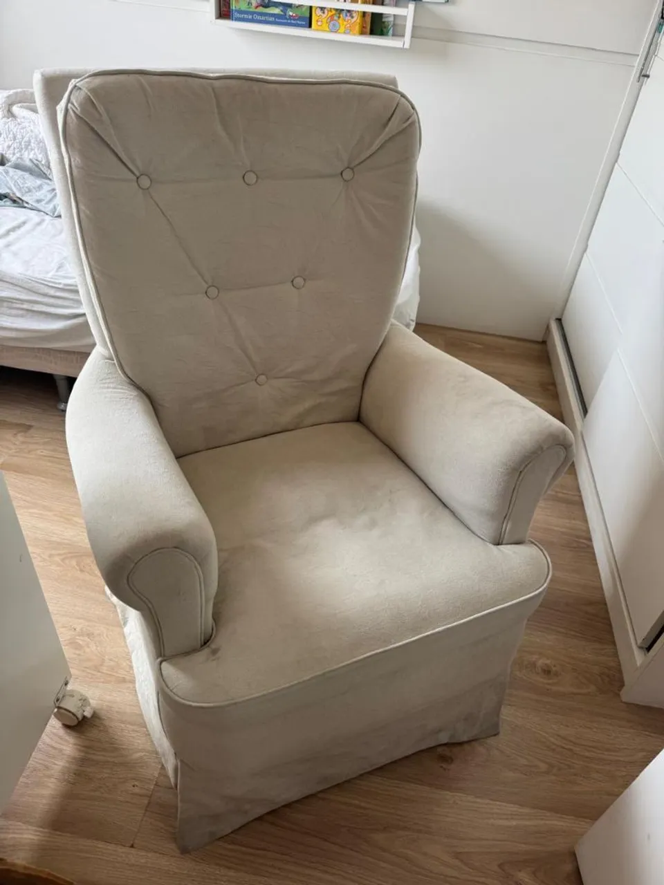Linda poltrona com design clássico e tecido macio. Perfeita para relaxar e decorar seu ambiente com charme e conforto!