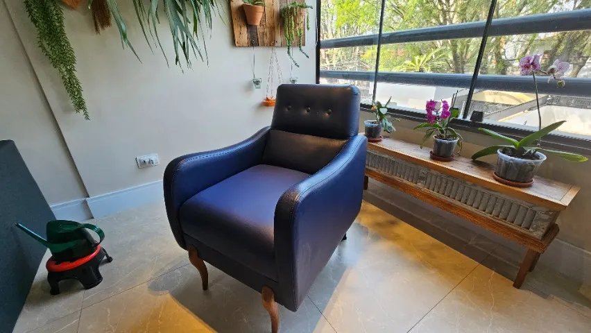 Linda poltrona retrô, perfeita para dar um toque de charme e elegância ao seu ambiente. Design clássico e confortável, ideal para relaxar e aproveitar momentos de descanso.