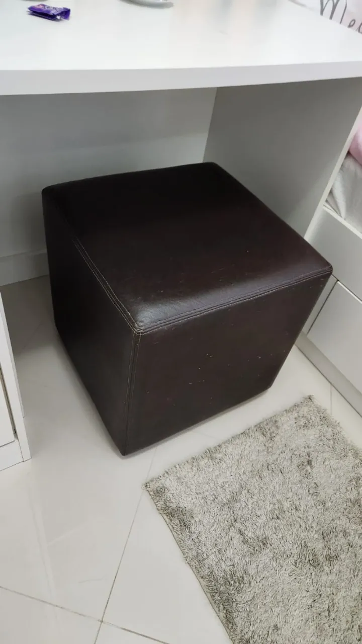 Puff em courino marrom, ideal para complementar sua sala ou quarto. Design moderno e elegante, perfeito para relaxar e decorar seu ambiente.