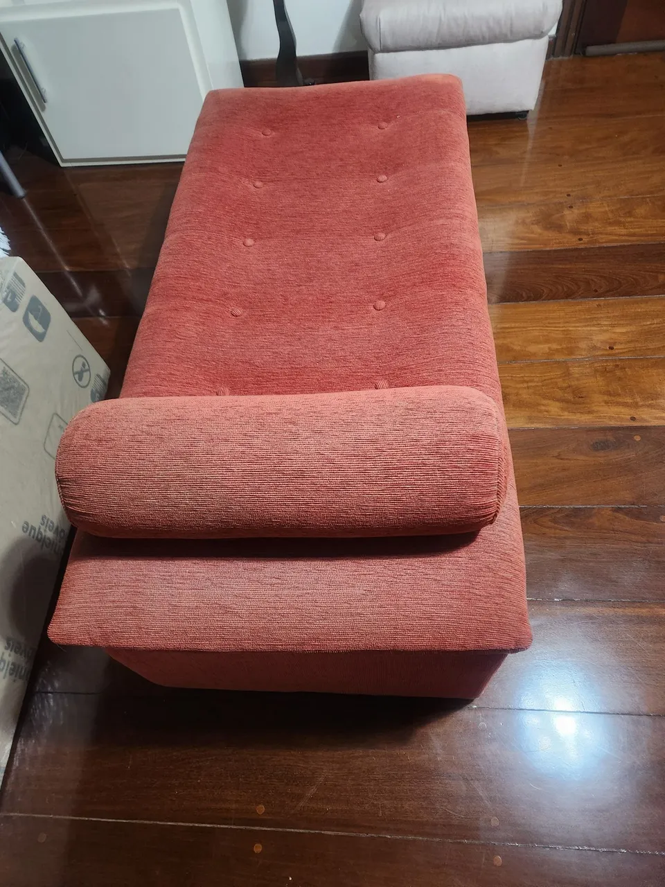 Recamier elegante e confortável para relaxar em tecido vinho de medidas 1,40 x 0,65 x 0,45 (altura). Obs. Necessita refazer o forro (debaixo conforme foto).