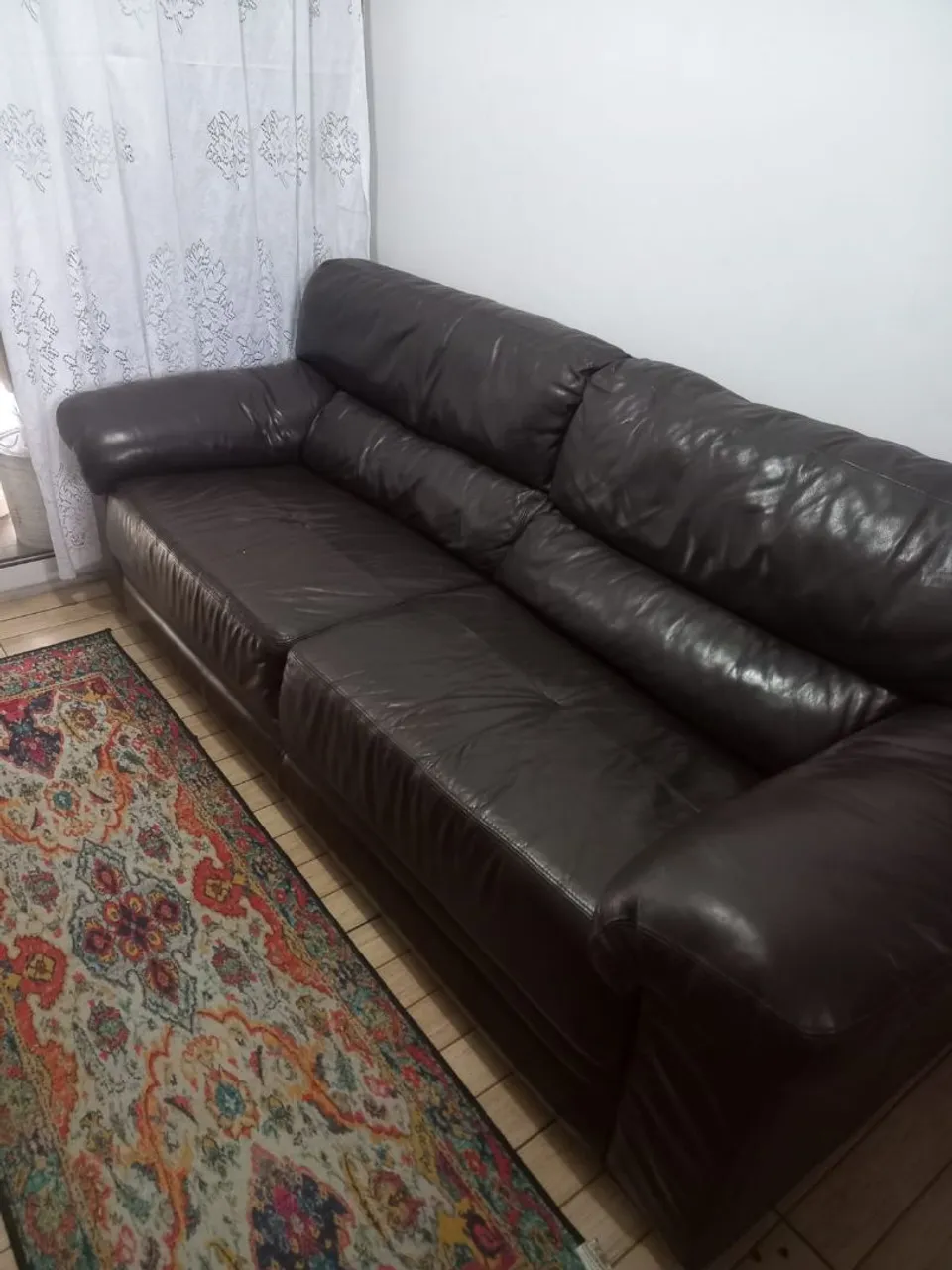 Sofá de couro legítimo 4 lugares usado e bem estado com a pequena avaria no centro só costura comprimento 2 m x 1,10 m