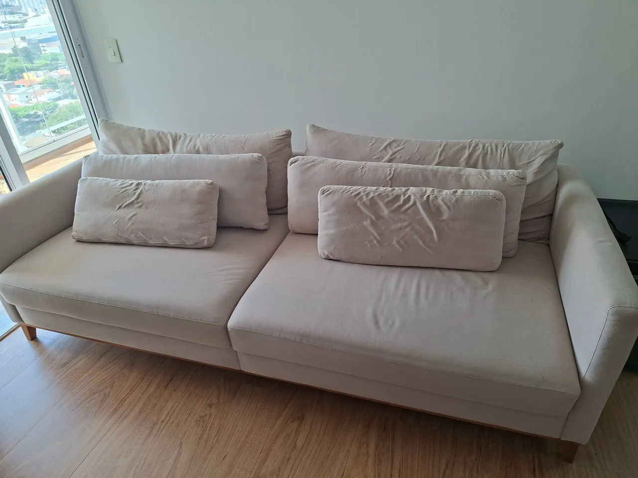 Apresentamos este sofá elegante e confortável, perfeito para relaxar e aproveitar momentos de descanso. Seu design moderno e estofado de alta qualidade garantem o máximo de conforto e estilo para sua sala.