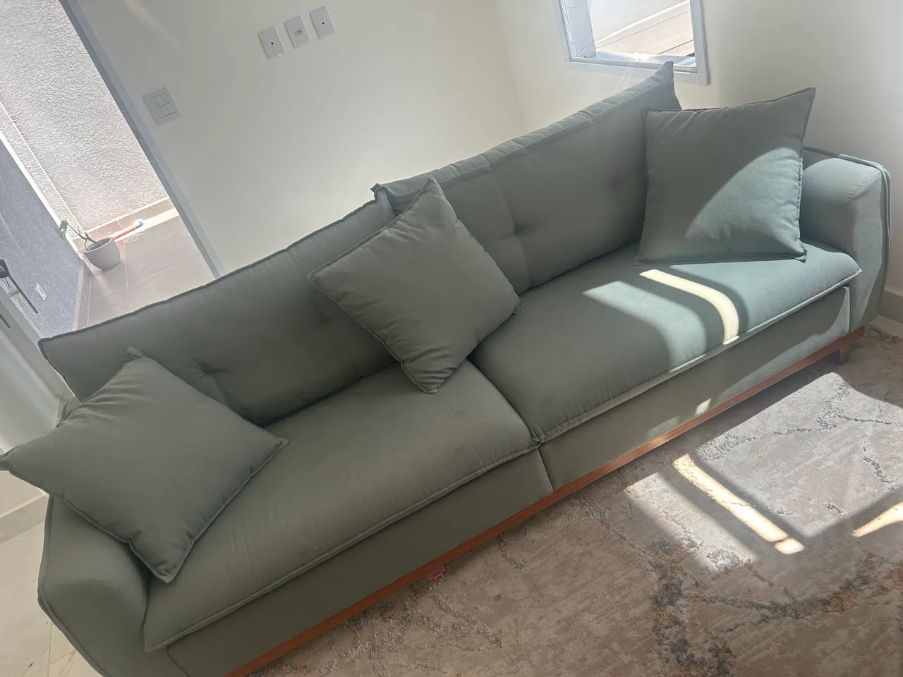 Sofá espaçoso com 2,20 metros de largura, perfeito para acomodar toda a família. Design moderno e confortável, ideal para relaxar e decorar sua sala.