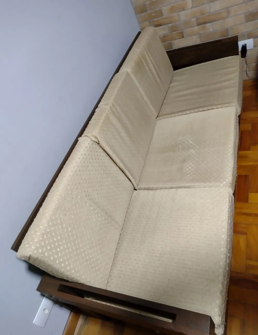 Sofá espaçoso de 3 lugares, perfeito para relaxar e receber amigos. Design elegante em madeira maciça que traz um toque de sofisticação para sua sala. Conforto e estilo em um só produto!