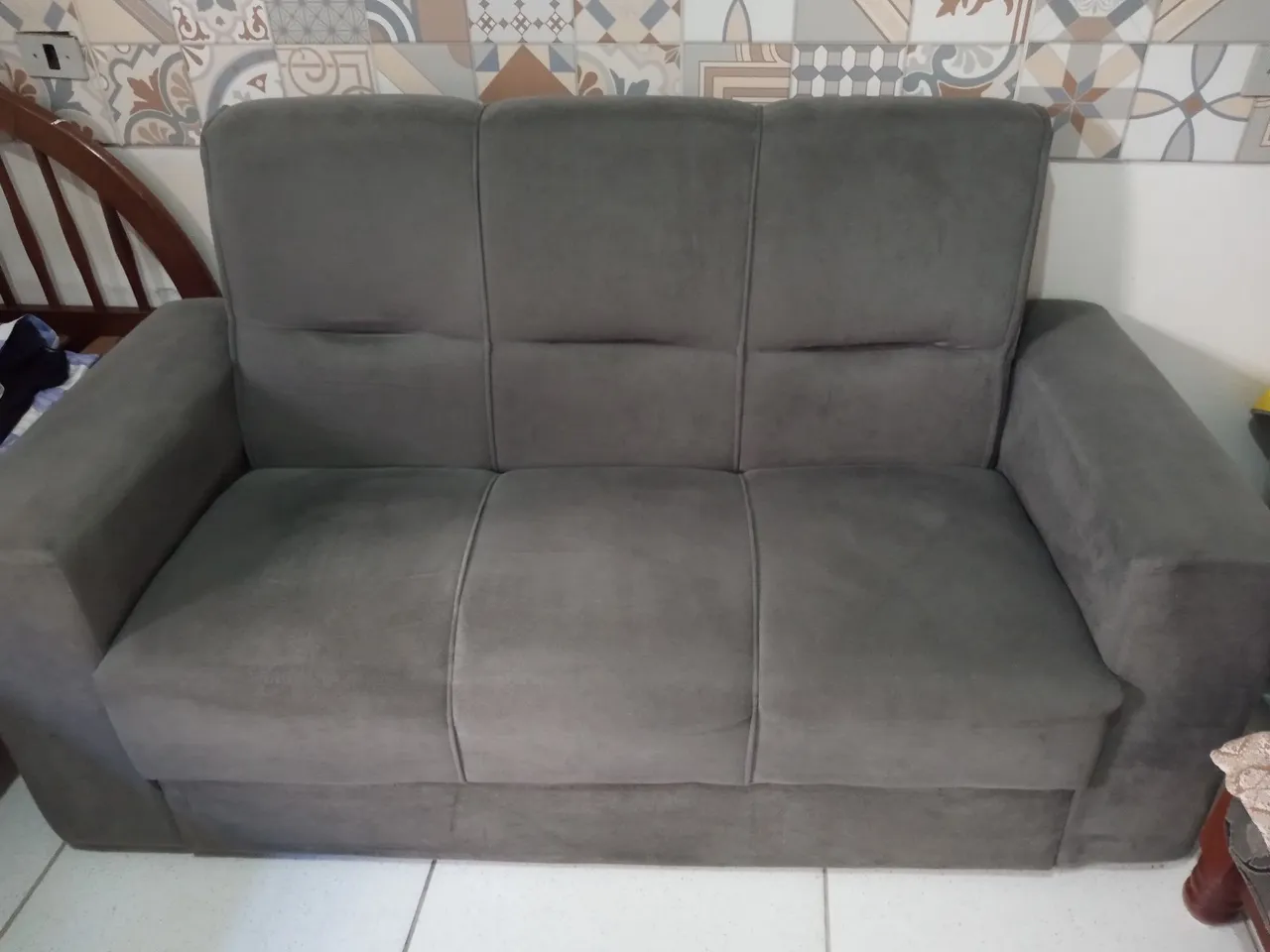 Apresentamos um sofá de 3 lugares em tecido suede, perfeito para a sua sala! Conforto e elegância em um só móvel. Design moderno e acabamento impecável para transformar seu ambiente. Ideal para relaxar e receber visitas.