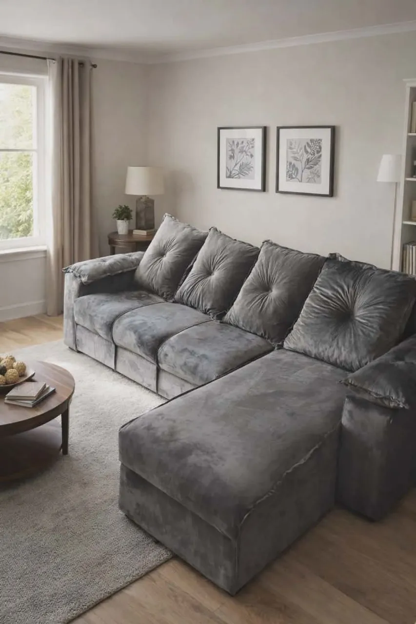 Sofá espaçoso de 4 lugares, perfeito para reunir a família e amigos. Design moderno e confortável, ideal para relaxar e aproveitar momentos de lazer.