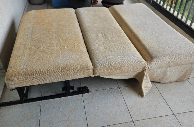 Sofá cama usado, ideal para otimizar espaços. Confortável e prático, perfeito para acomodar visitas ou relaxar. Um móvel versátil e funcional para sua casa.