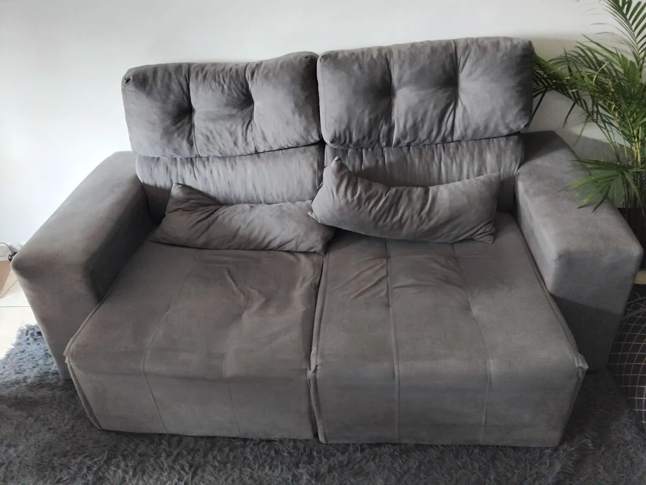 Sofá cinza confortável para sua sala. Design moderno e elegante, perfeito para relaxar e receber convidados. Ideal para quem busca sofisticação e bem-estar.