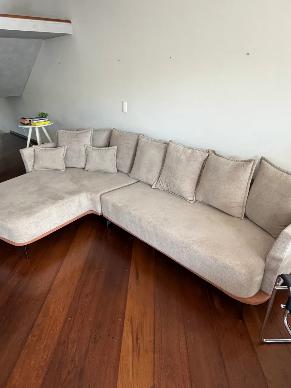 Apresentamos um sofá cinza grande, perfeito para transformar sua sala em um ambiente de conforto e sofisticação. Design moderno e elegante, ideal para relaxar e receber amigos e familiares. Conforto e estilo em um só lugar!