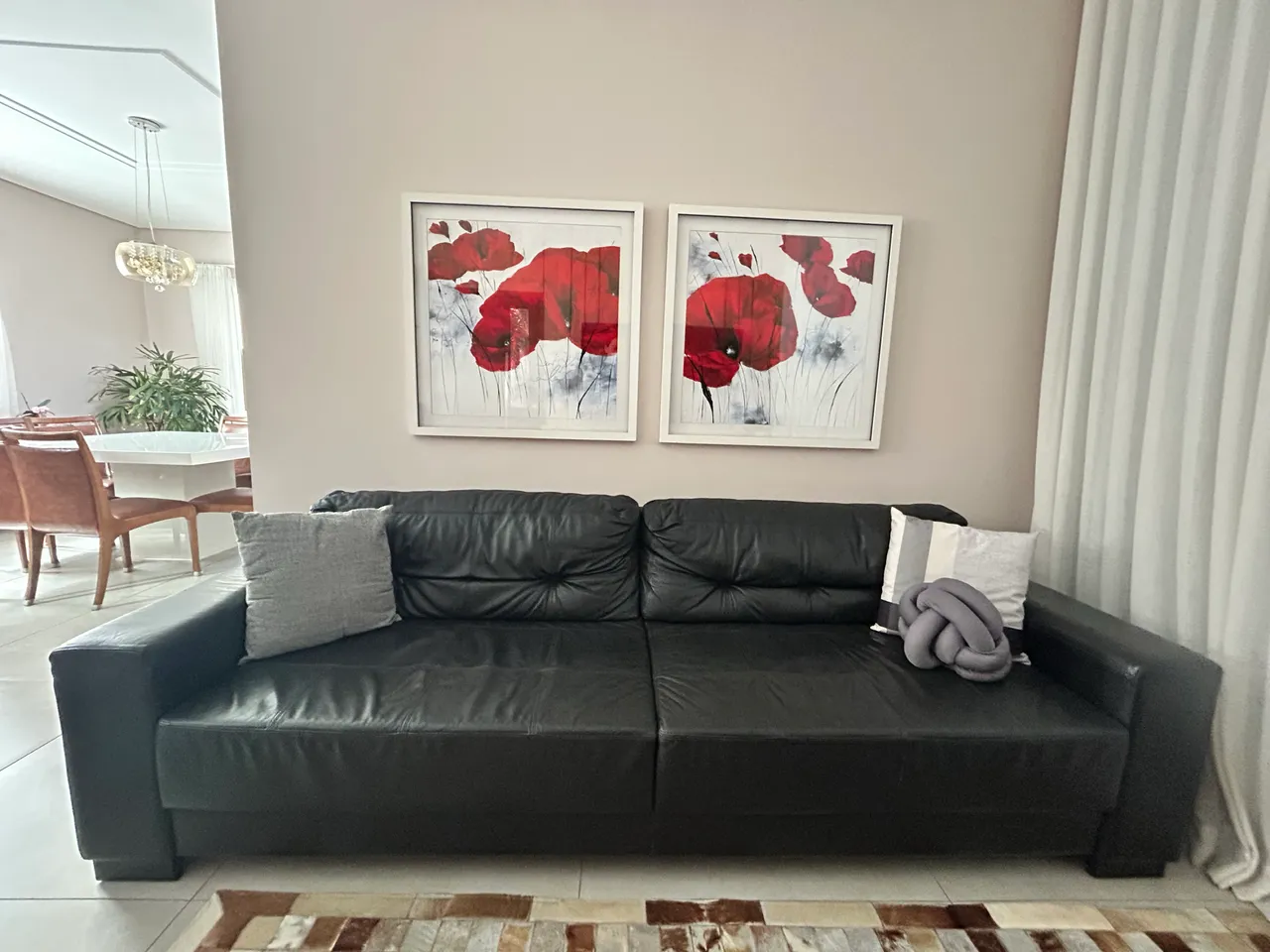 Sofá em couro preto legítimo, design elegante e moderno para sua sala. Conforto e sofisticação em um só móvel. Excelente estado. Medidas: 2,60m x 88cm x 80cm