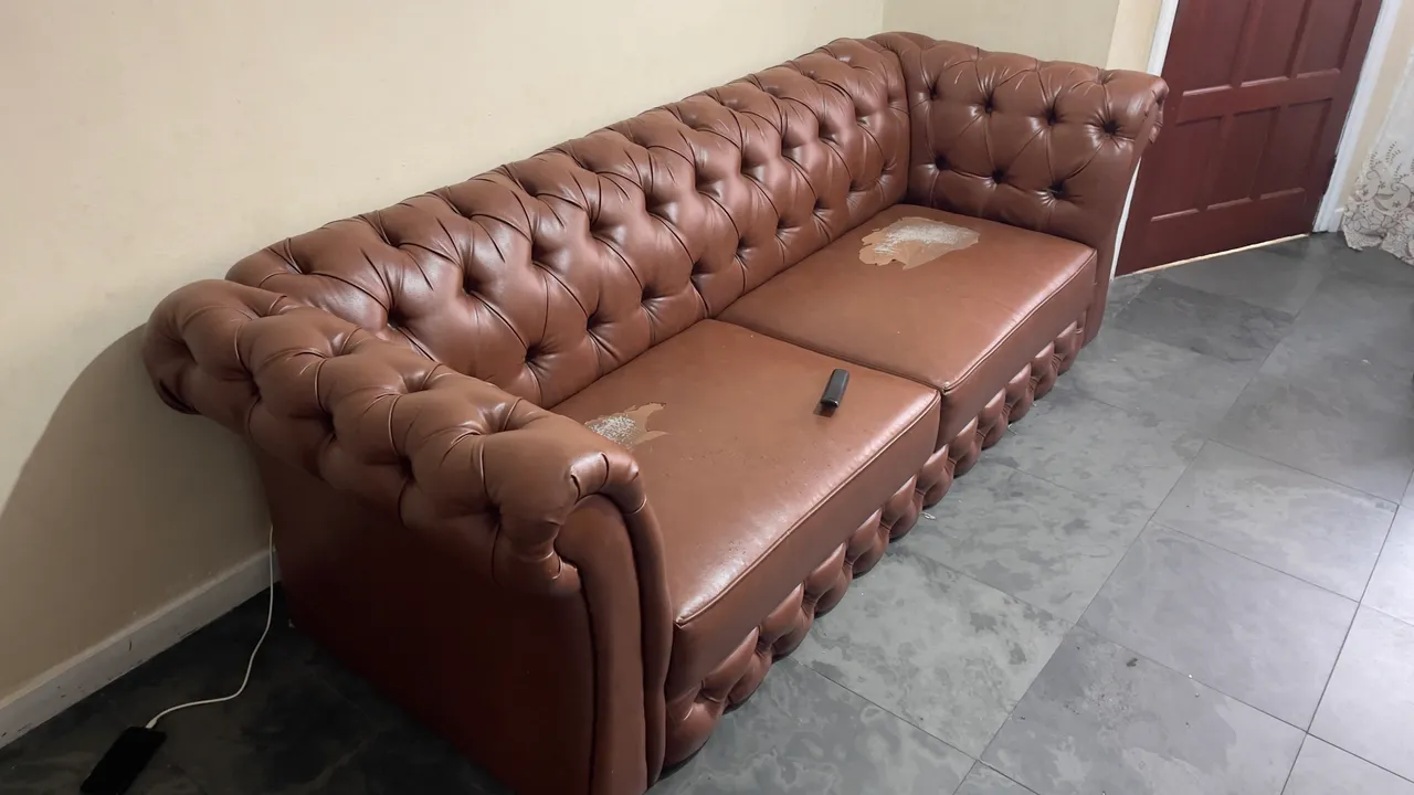Sofá e poltrona em couro. Necessita de reforma. Ficou guardado no galpão e acabou estragando o couro dos acentos. Sofá tem 1.80. Paguei 15 mil quando comprei. Estou vendendo pois não tenho aonde deixá-los.