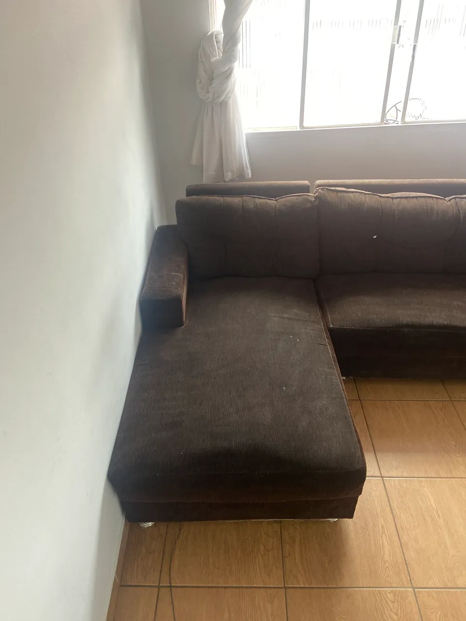 Sofá marrom escuro de tecido Acompanha 5 almofadas Medidas: Parte para deitar - 100 x 160 Sofá por inteiro - 100 x 310