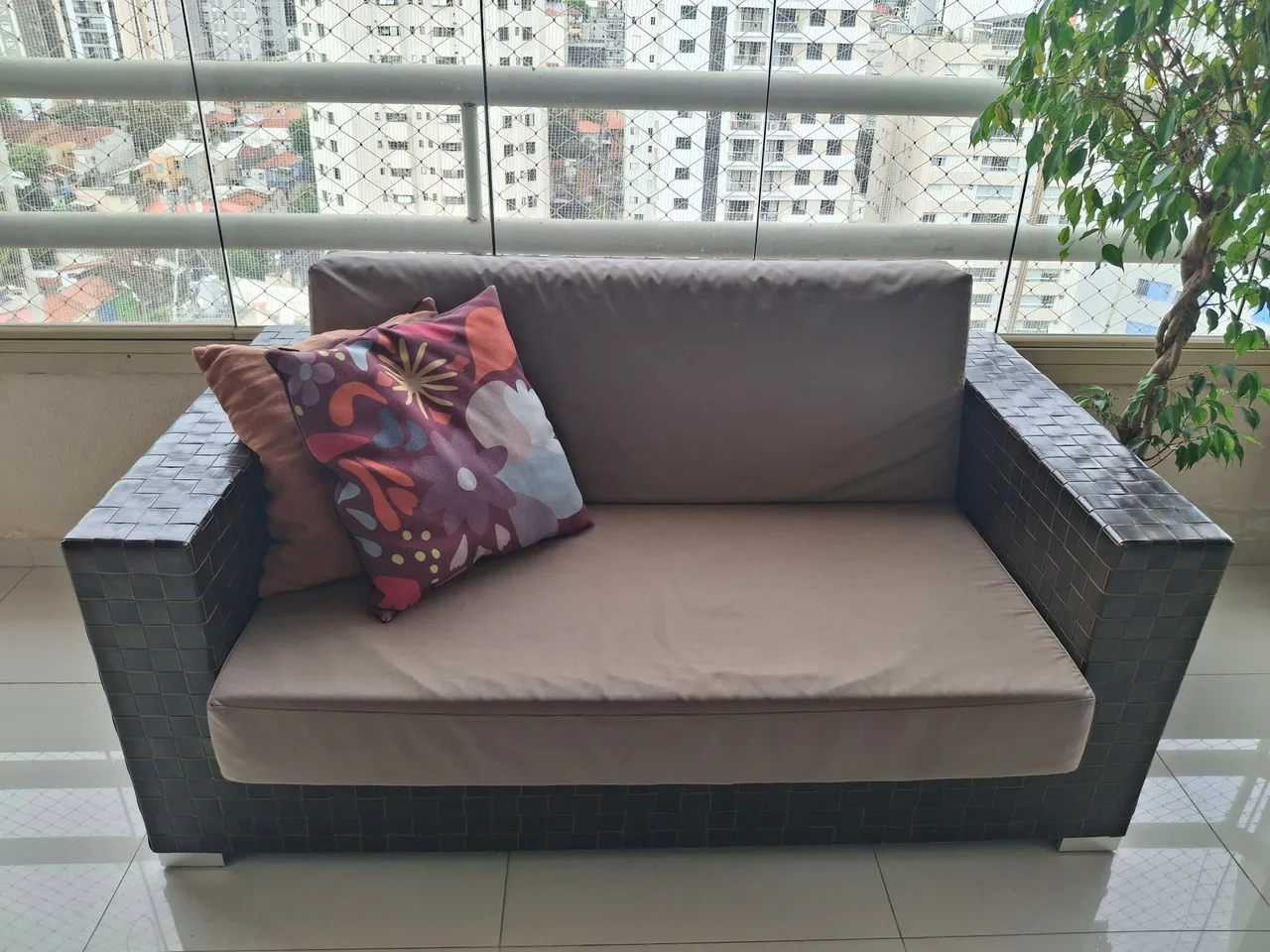 Sofá perfeito para sua varanda ou área externa! Conforto e estilo se encontram neste sofá charmoso, ideal para relaxar e aproveitar momentos ao ar livre.